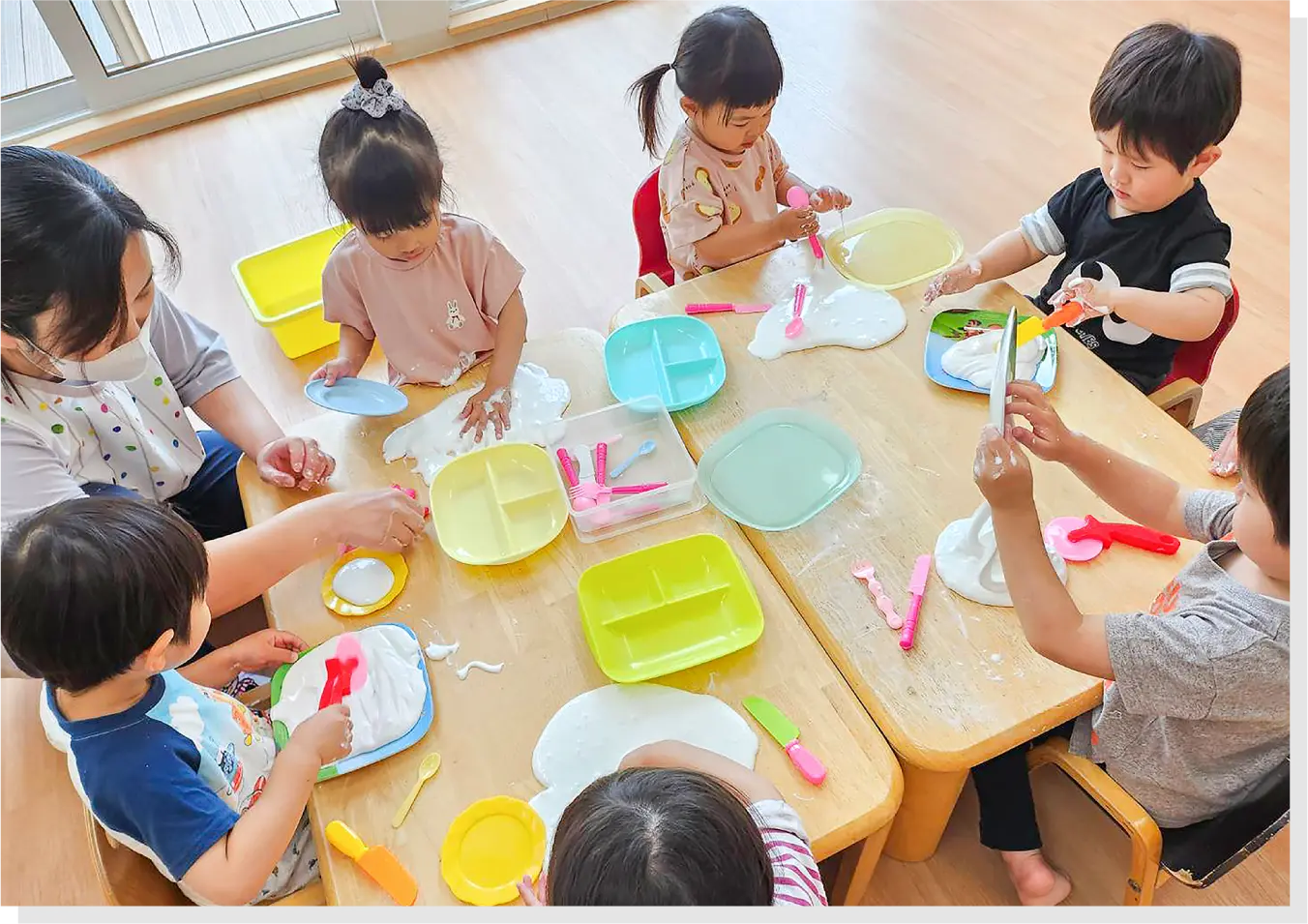 なないろ保育園では、一人ひとりのリズムに寄り添いながら、朝から夕方まで安心して過ごせるスケジュールを組んでいます。戸外遊びや季節ごとの行事など、子どもたちの興味を大切にしながら、楽しみと学びをバランスよく取り入れています。以下は1日の流れの一例です。クラスや日によって活動内容が変わる場合もあります。